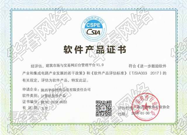 建筑市場與交易網(wǎng)管理平臺軟件產(chǎn)品證書